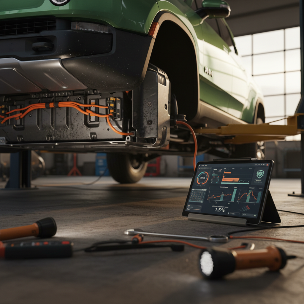 Look under the car (or have a shop do it) for signs of damage to the battery enclosure from curbs or debris. Even if range looks good today, structural damage can be a safety concern.